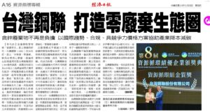NEWS 公司榮譽與永續行動, 媒體報導 2025/11/28 經濟日報:台灣鋼聯打造零廢棄生態圈 營收公告 2025/11/06 公告114年10月份合併自結損益 公司榮譽與永續行動 2025/10/31 台灣鋼聯受環境部資源循環署肯定,榮獲資源循環績優企業「金質獎」 營收公告 2025/10/07 公告114年09月份合併自結損益 營收公告 (11)公司榮譽與永續行動 (10)媒體報導 (4) 公司榮譽與永續行動, 媒體報導 2025/11/28 經濟日報:台灣鋼聯打造零廢棄生態圈 營收公告 2025/11/06 公告114年10月份合併自結損益 公司榮譽與永續行動 2025/10/31 台灣鋼聯受環境部資源循環署肯定,榮獲資源循環績優企業「金質獎」 營收公告 2025/10/07 公告114年09月份合併自結損益 營收公告 2025/09/04 公告114年08月份合併自結損益 公司榮譽與永續行動 2025/09/03 2025外資精選台灣 100 強頒獎典禮暨外資論壇 (中堅潛力獎-第18名) 營收公告 2025/08/06 公告114年07月份合併自結損益 營收公告 2025/07/04 公告114年06月份合併自結損益 營收公告 2025/06/05 公告114年05月份合併自結損益 營收公告 2025/05/06 公告114年04月份合併自結損益 文章分頁 1 2 3 下一頁 關於台灣鋼聯 公司簡介公司沿革企業核心價值政策認證與證書關係企業 產品與服務 旋轉窯製程可收受廢棄物/資源物項目專業服務粗氧化鋅 新聞中心 營收公告媒體報導公司榮譽與永續行動 投資人專區 財務資訊公司治理股東服務 承攬商登錄系統 入廠登錄系統操作說明承攬商作業相關表單 環境監測 監測資訊 聯絡我們 聯絡方式交通資訊不法行為舉報 台灣鋼聯 ESG Youtube 台鋼資源網站