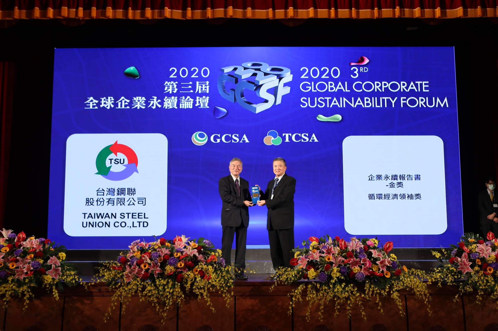 台灣鋼聯 於第 14 屆 TCSA 台灣企業永續獎 中,榮獲綜合績效-「永續企業績優獎」,並同時獲得**單項績效-「循環經濟領袖獎」「永續報告書金獎」**多項肯定。