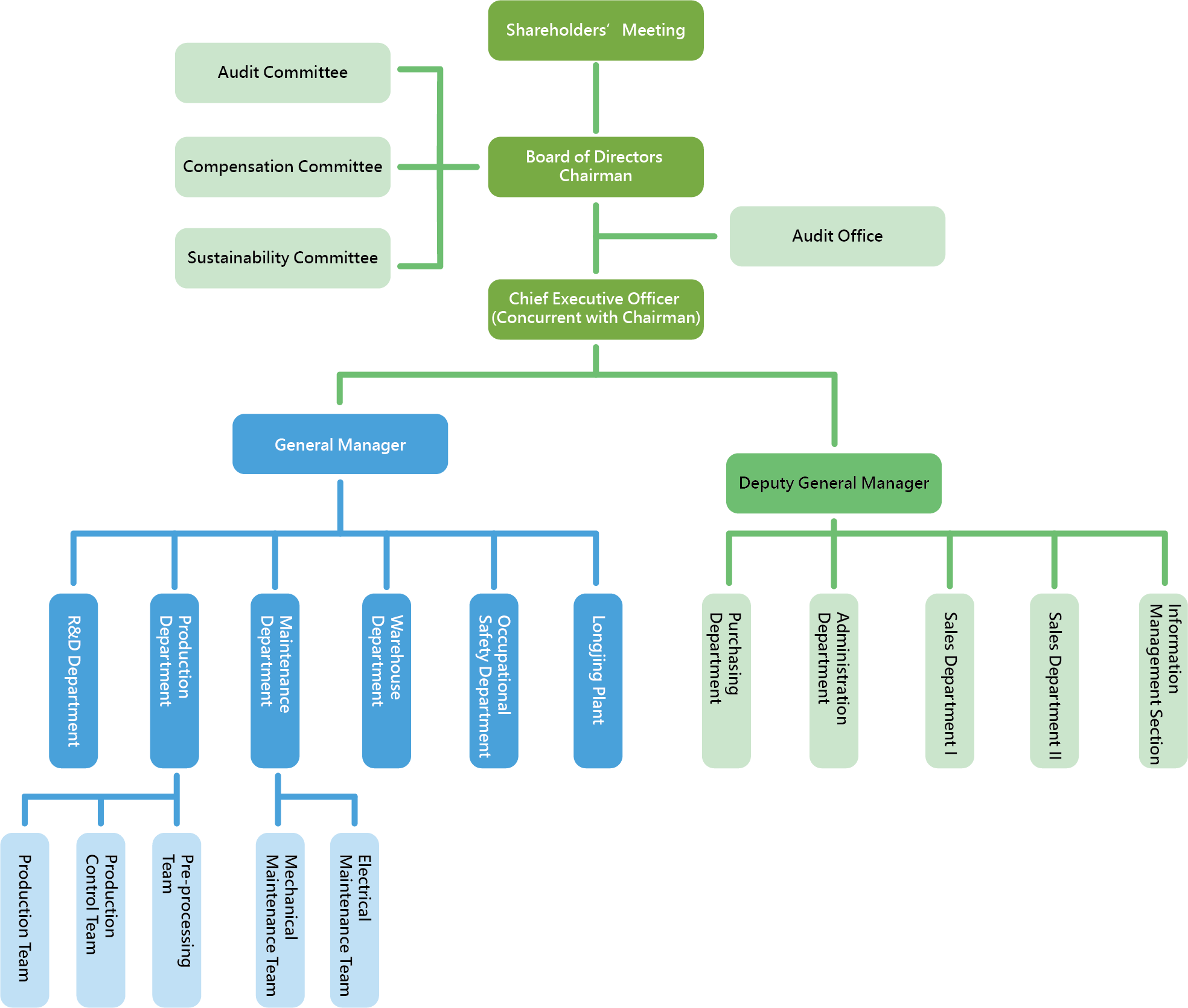 Corp. Structure Home / Investors / Corporate Governance / Corp. Structure Board of DirectorsCorp. StructureID–IA–EA CommunicationKey Internal RegulationsInternal AuditImplementation Results of Ethical Corporate ManagementSupplier Sustainability ManagementChief Corporate Governance Officer Corp. Structure About IntroductionHistoryCore ValuePolicyCertification and CertificateRelated companies Service Reusable WastesRecycleable WasteProfessional ServiceCrude Zinc Oxide NEWS NewsMediaESG Investors FinancialsCorporate GovernanceShareholder Service Reports Env. Monitoring ReportsESG Report Contact Us User GuidePlant Entry Registration SystemContractor Operational-Related Forms Taiwan Steel Union ESG Youtube Taiwan Steel Resources